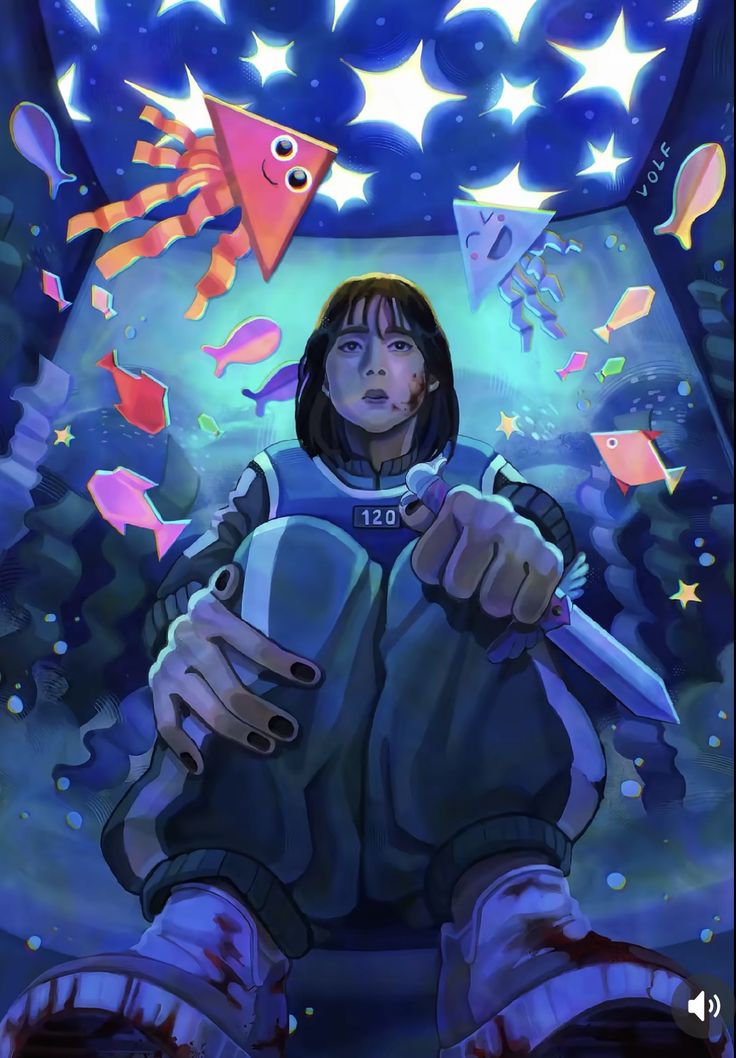 ~♥🎲 «Внимание всем участникам игры! Начинается финальная шестая игра первого тура - "Игра в кальмара". Разметка — два круга, один наверху, второй внизу. Верхний круг пересекает большой треугольник, нижний — квадрат примерно того же размера. Игроки делятся на две команды: нападение и защита. Цель атакующих — преодолеть все препятствия и добраться до «головы кальмара», обозначенной маленьким закрытым кругом в верхней части поля. Защитники должны помешать нападающим любыми способами. Защитники могут использовать обе ноги и свободно перемещаться по полю, нападающие за пределами обозначенных линий вынуждены прыгать на одной ноге. Если атакующий прорывает линию защиты и проходит к следующей зоне, ему разрешается использовать обе ноги. Финальный раунд: нападающие должны добраться до «головы кальмара» и одной ногой попасть в закрытое пространство — это завершает игру победой атакующей команды. Победа защитников: если защитникам удаётся вытеснить всех нападающих за границы поля или помешать им добраться до головы, они одерживают победу...» Какую сторону примешь?