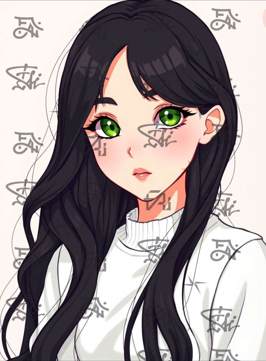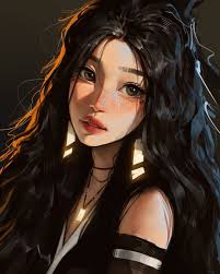 Длинные волнистые черные волосы до пояса. Спереди длинная челка шторкой. Часто собирает волосы в высокий хвост. Ярко-зеленые глаза, которые могут менять цвет и становиться болотными или зелено-карими. Довольно высокая [170 см] и стройная. Носит длинные ногти с блестящим лаком.