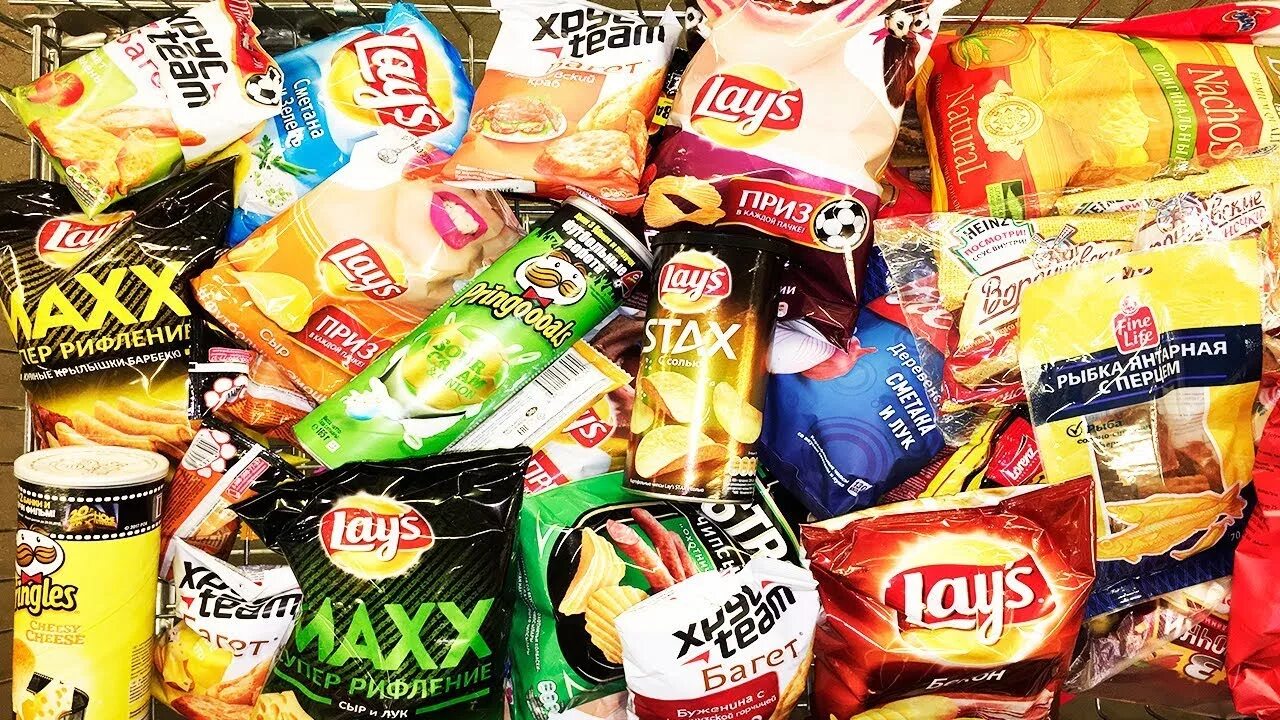 Еда: чипсы любого вида: крабовые, сырные, беконовые, сметанаилуковые и т.д.,  попкорн: соленый, с карамелью, с сахаром, обычный, и др.꧂