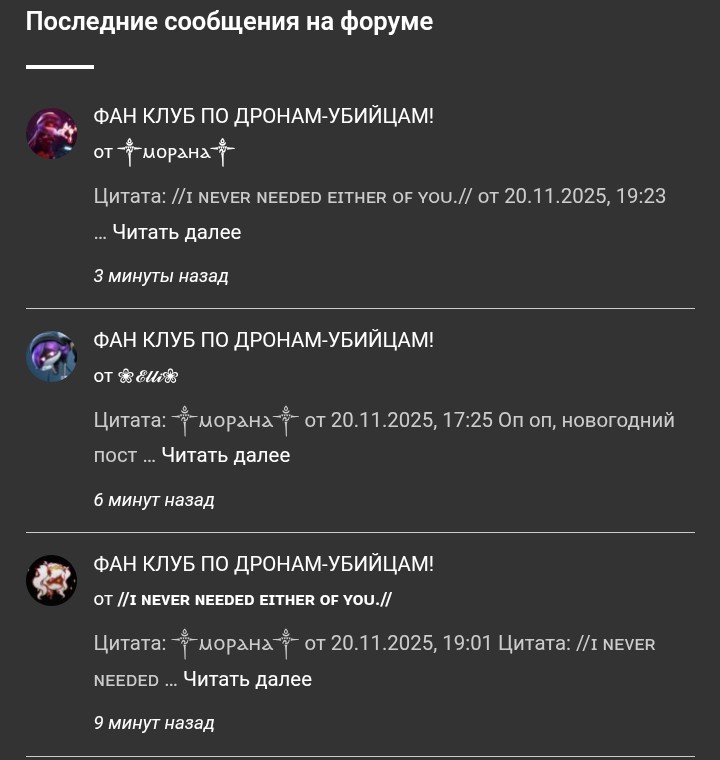 Цитата: ༒ⲙⲟⲣⲁⲏⲁ༒ от 20.11.2025, 19:01Цитата: //ɪ ɴᴇᴠᴇʀ ɴᴇᴇᴅᴇᴅ ᴇɪᴛʜᴇʀ ᴏꜰ ʏᴏᴜ.// от 20.11.2025, 18:59Цитата: ༒ⲙⲟⲣⲁⲏⲁ༒ от 20.11.2025, 17:25Оп оп, новогодний пост