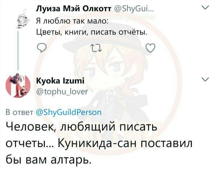 Непревзойдëнный ОгурецКсения Холмс | Юкичи Фукудзава |Удаленный пользовательУдаленный пользовательТень/я психопат, я встаю в пять часов утра/что?Читатель𝒴𝑜𝓊𝓇 𝒜𝓃𝑜𝓃𝓎𝓂𝑜𝓊𝓈~Агент по отлову сплющих Чуй