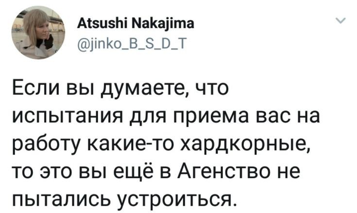 Непревзойдëнный ОгурецКсения Холмс | Юкичи Фукудзава |Удаленный пользовательТень/я психопат, я встаю в пять часов утра/что?ЧитательАгент по отлову сплющих Чуй