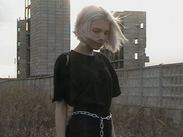 Худая, рост 167, носит одежду тёмных тонов.