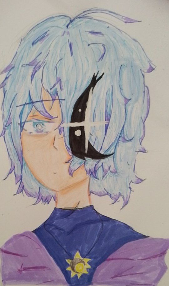 Так же в реальном мире у него пропадсет, та звëздочка, которая на волосах. А в тот магическом мире у него ещë и руки в рунах ★°•○-`◖