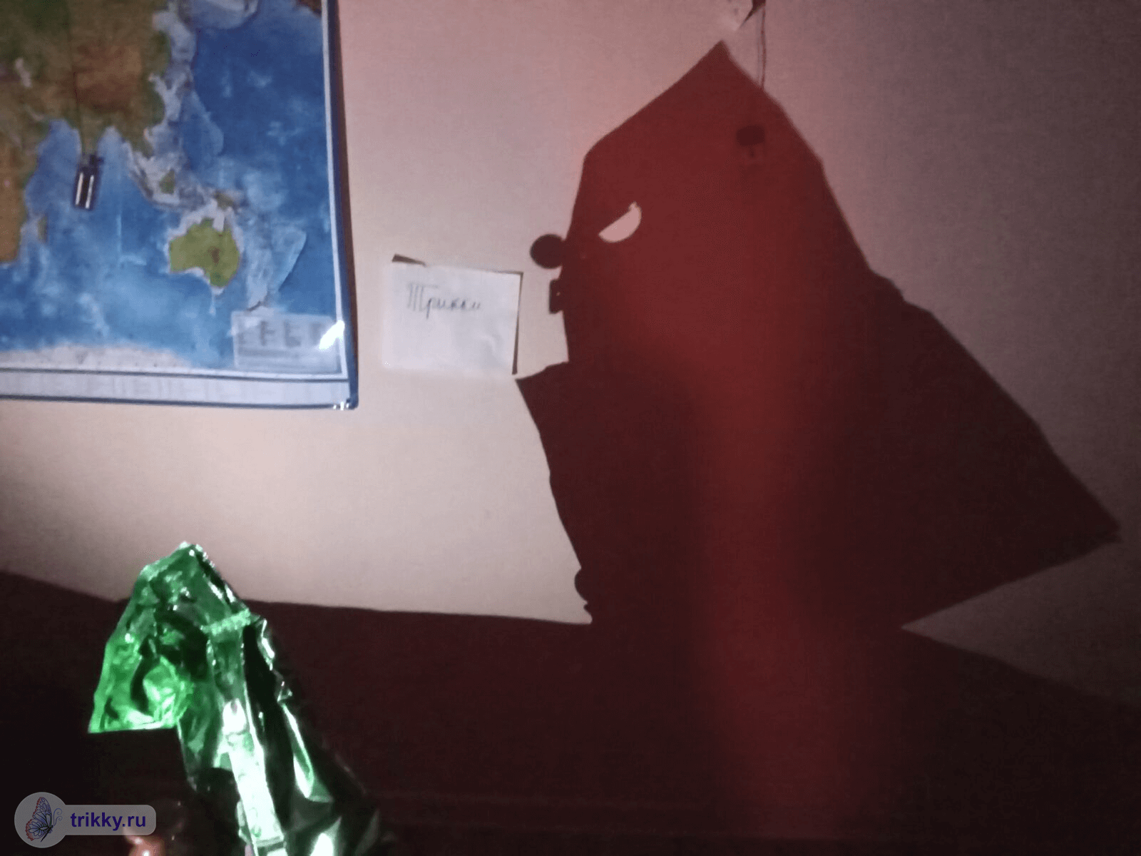Нет, это не какой-то там специальный фонарик. Я потратила целый вечер, сооружая конструкцию для имитации бэт-сигнала, подбирая подходящий ракурс и пытаясь найти источник света без рассеивающего стекла — все для того, чтобы тень получилась отчетливой и чтобы в нее не нужно было вглядываться.