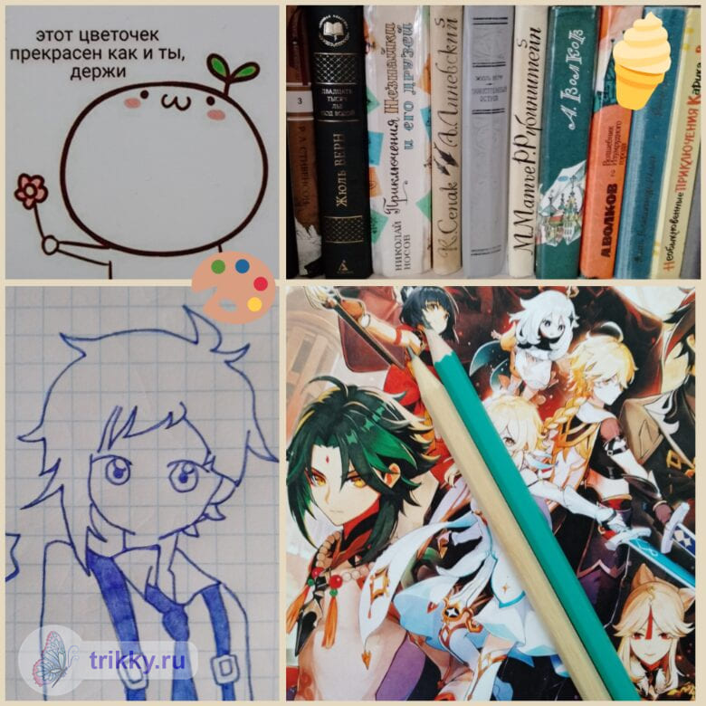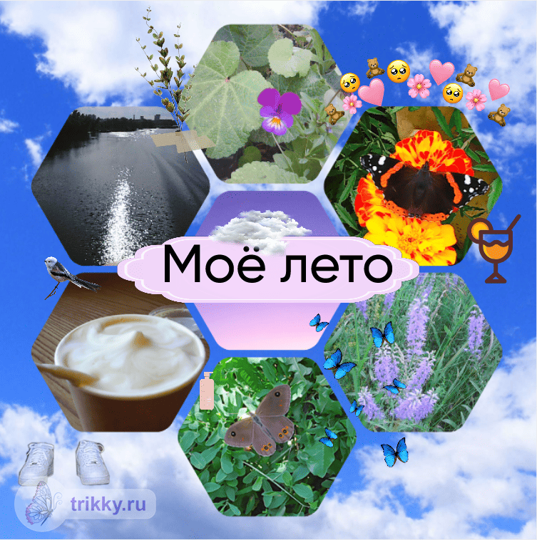 - Все основные фотографии должны быть сделаны вами. Из интернета можно взять только фон (но тогда он не должен быть сильно заметен), и маленькие картинки-стикеры для украшения (но чужие рисунки использовать нельзя).