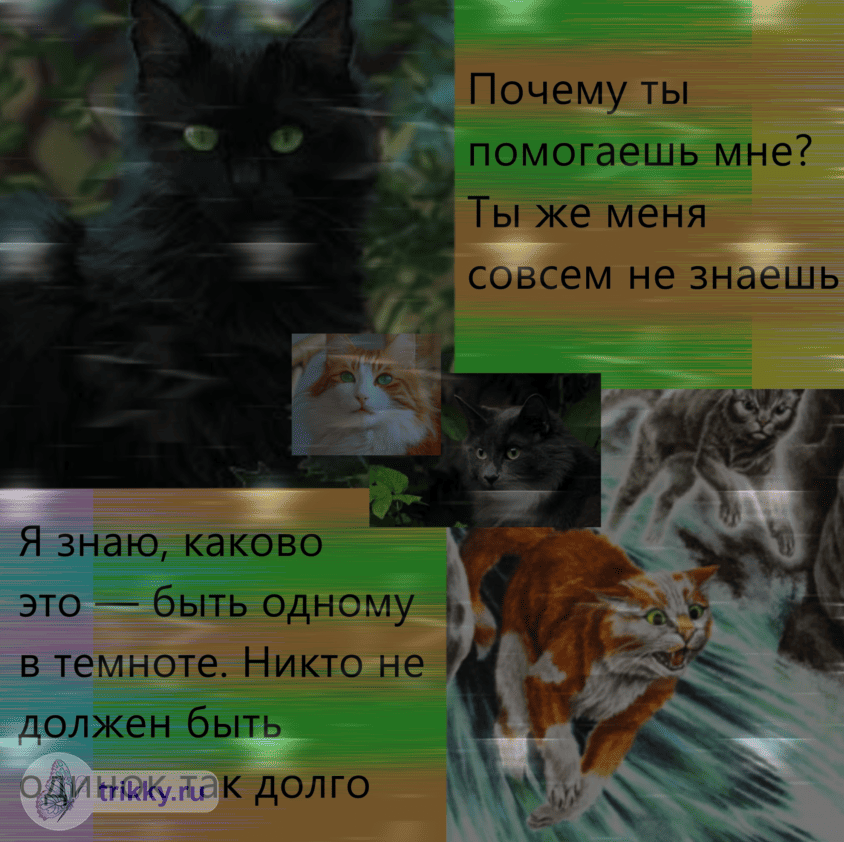 -Ещё впечатлили те, кто не добавлял вообще или минимизировал непосредственно персонажей в своих коллажах, но передавал атмосферу. Хорошая идея, получилось качественно