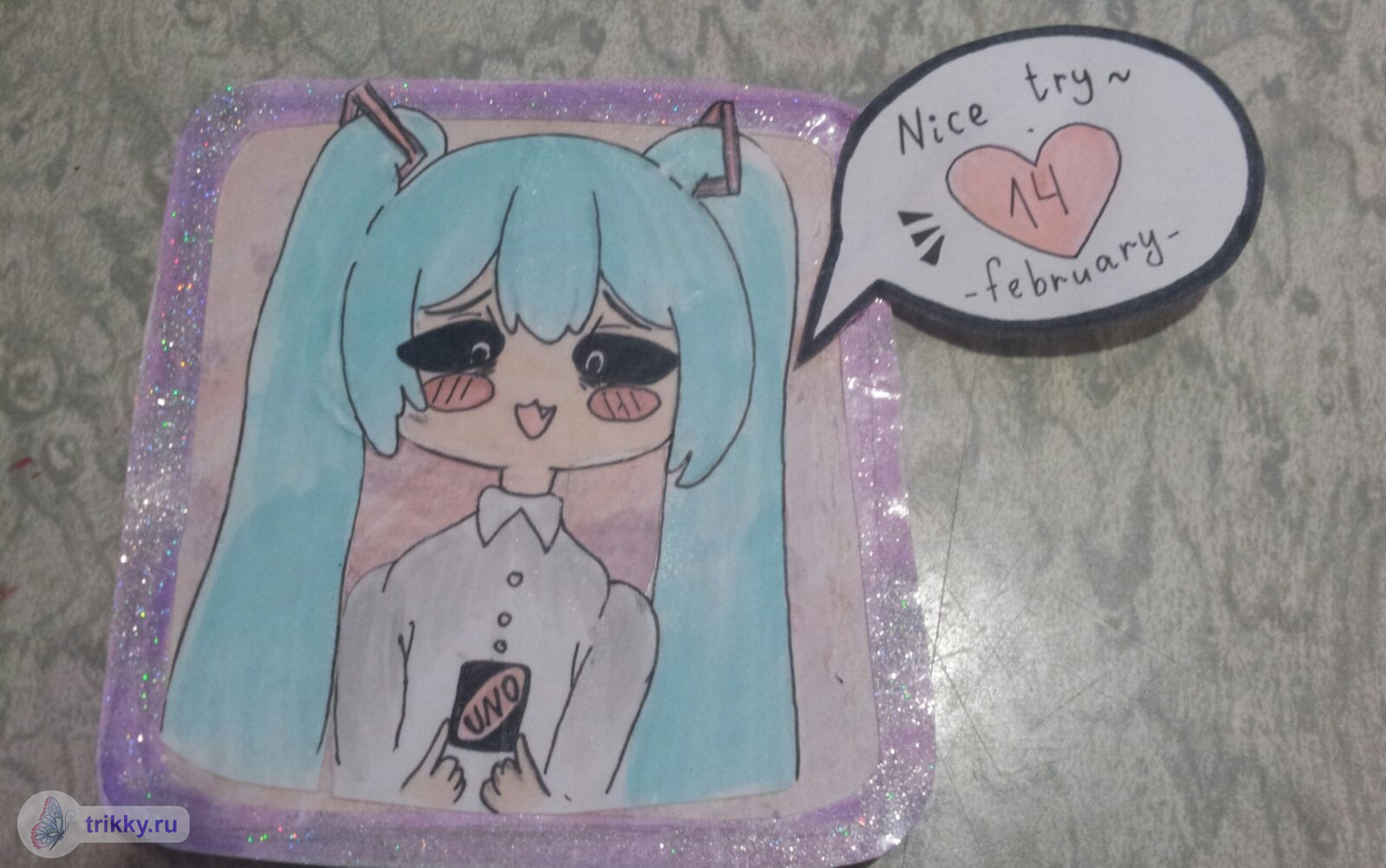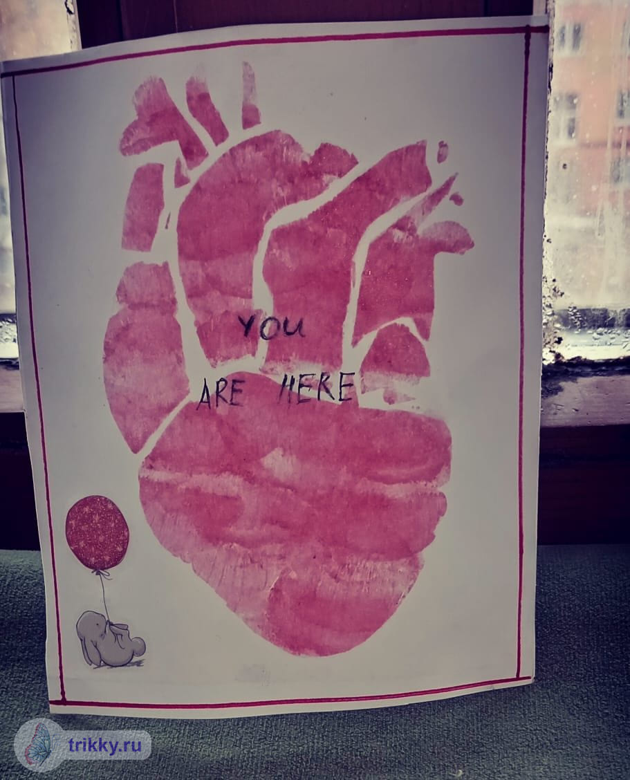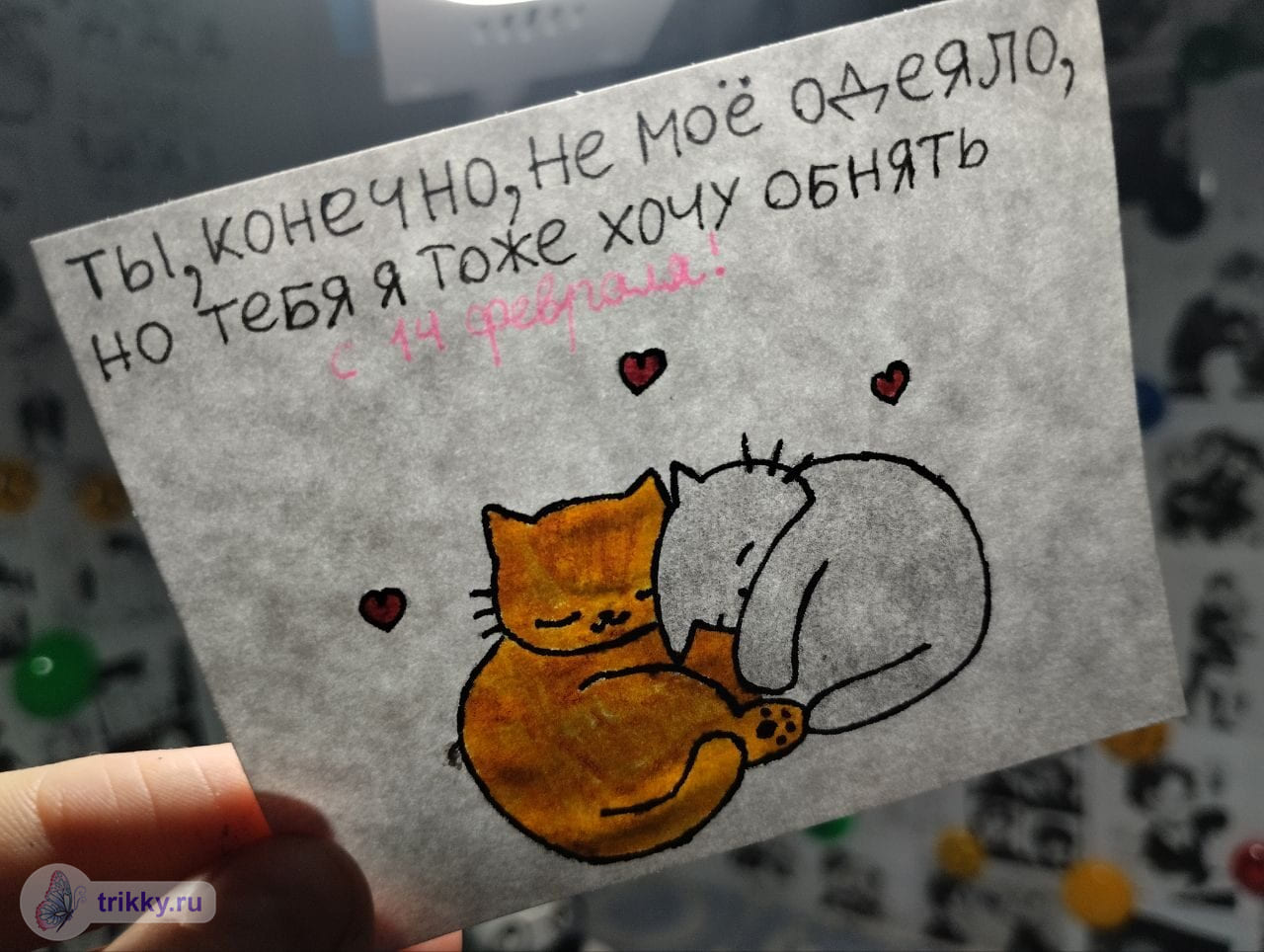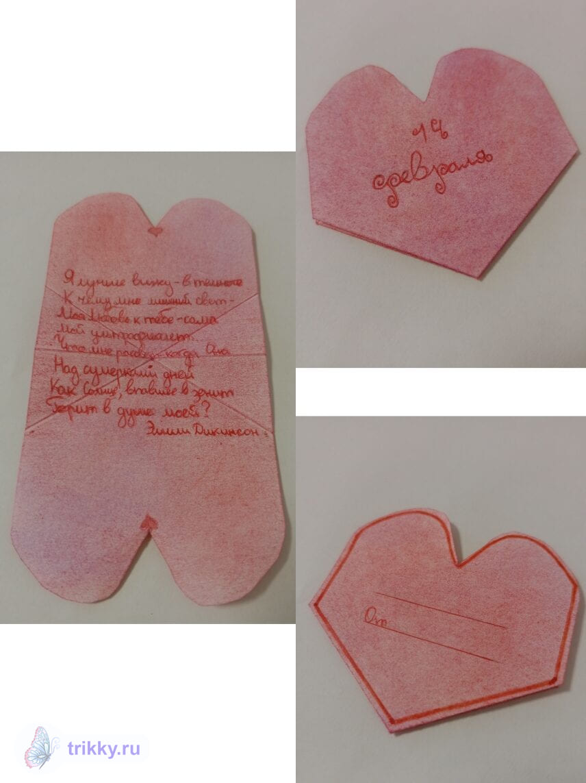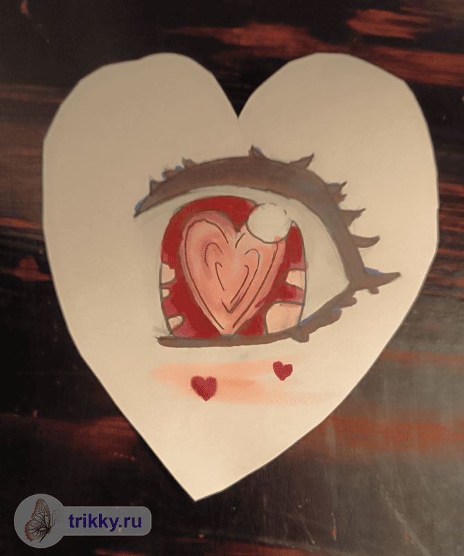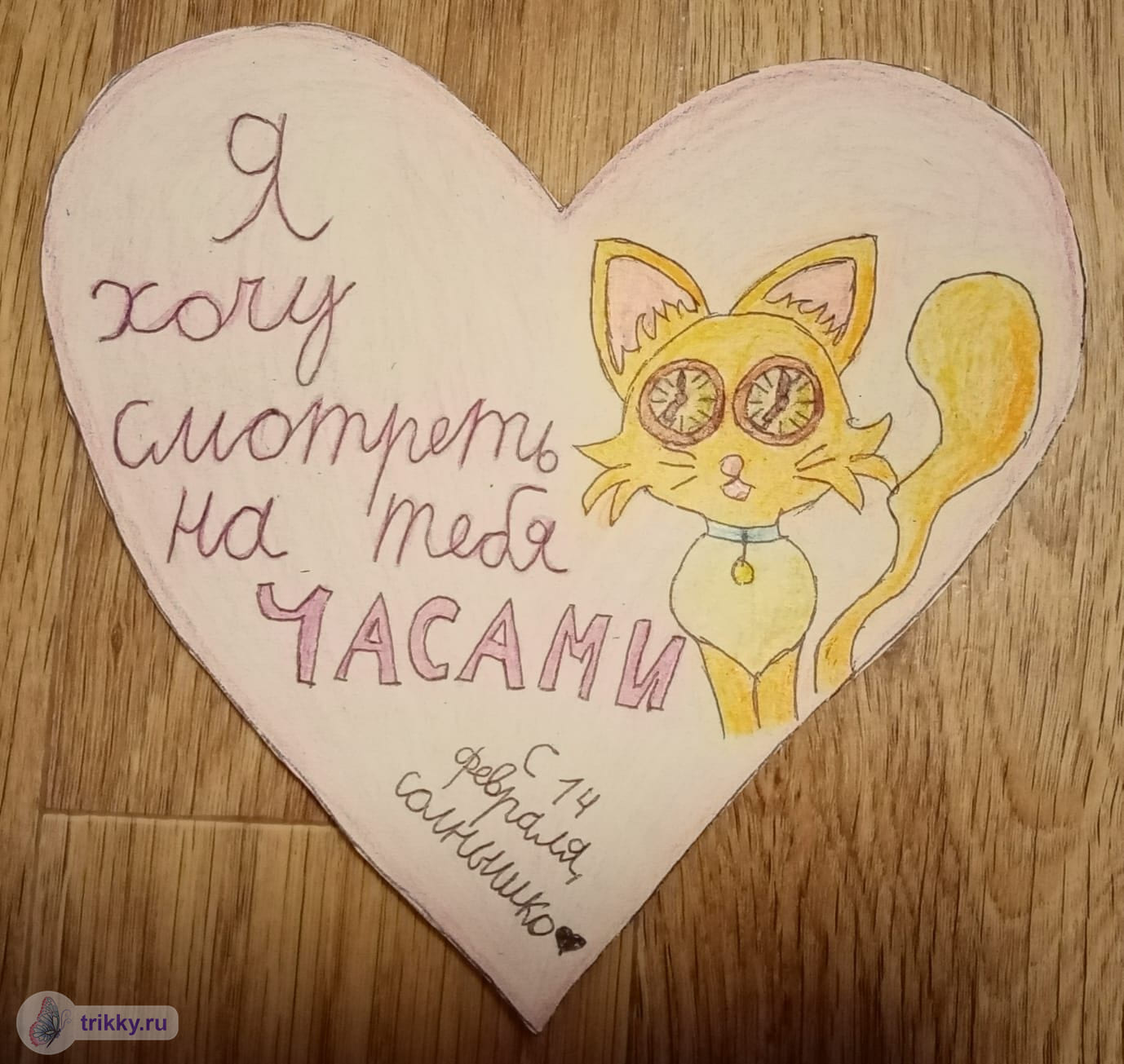 То есть, нужно сфотографировать валентинку с надписью "Трикки", когда она будет готова примерно наполовину.