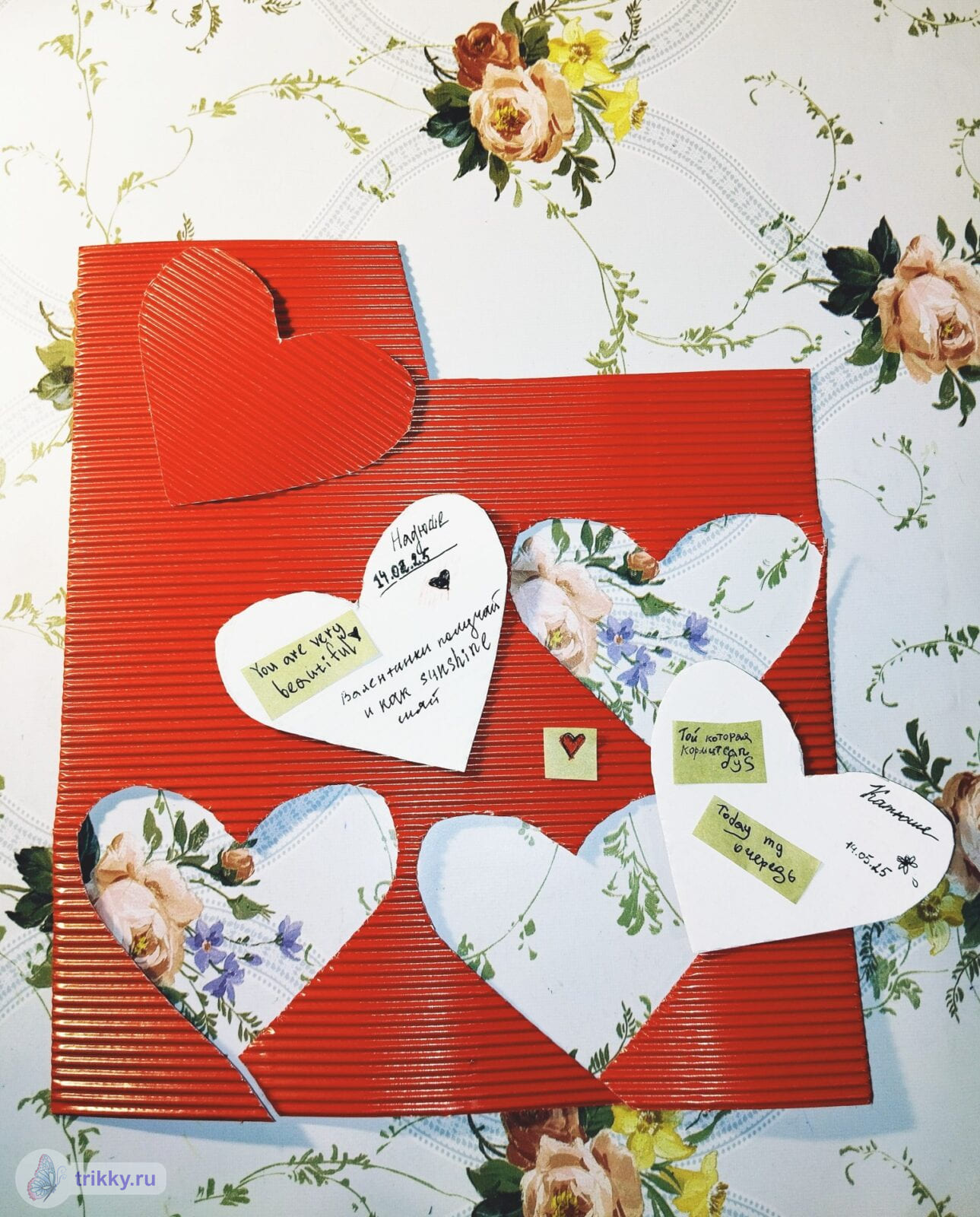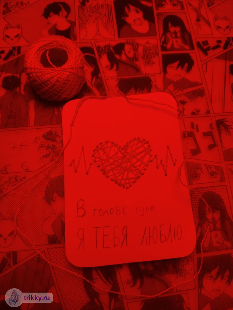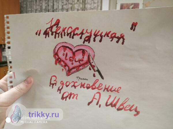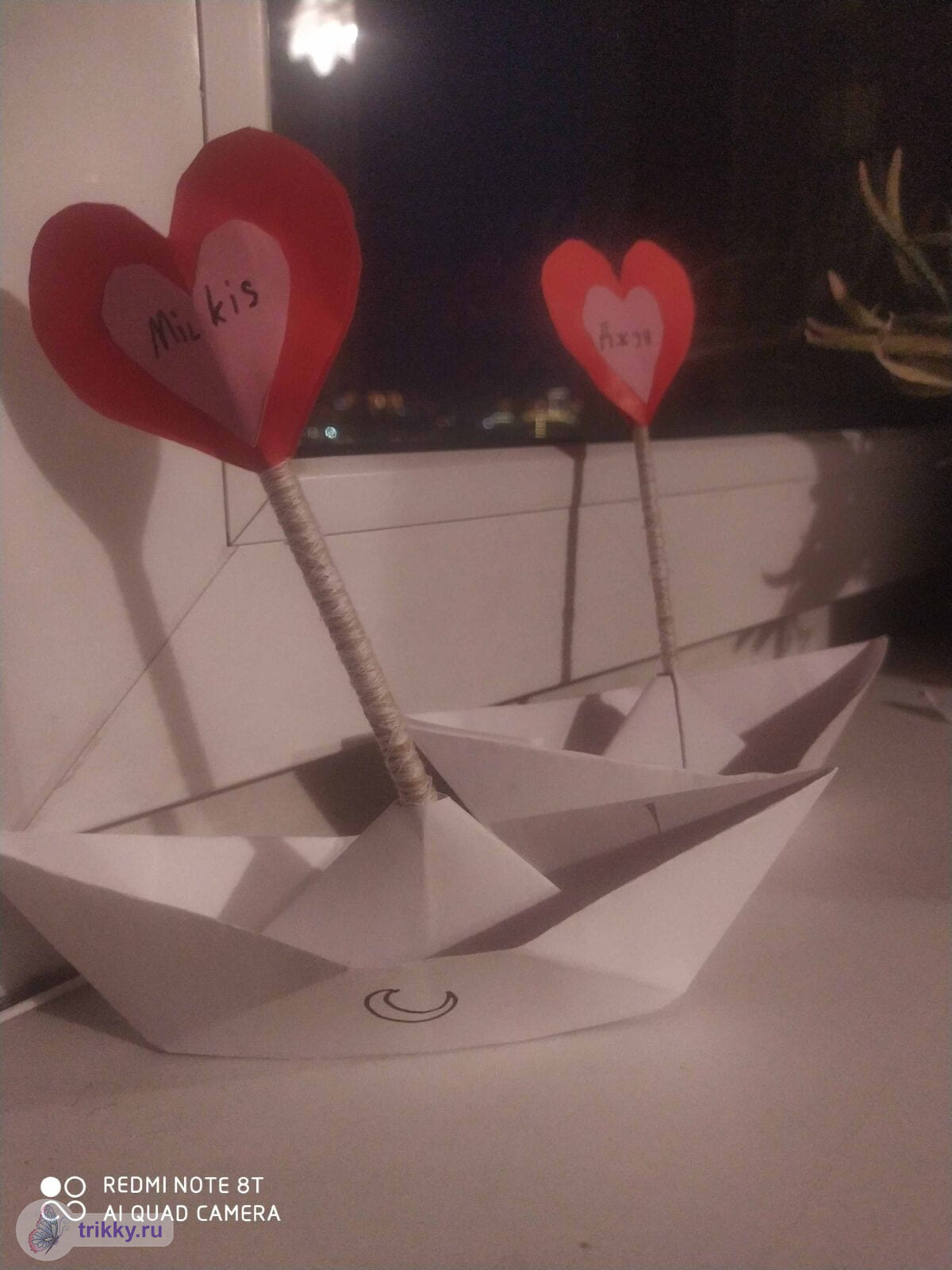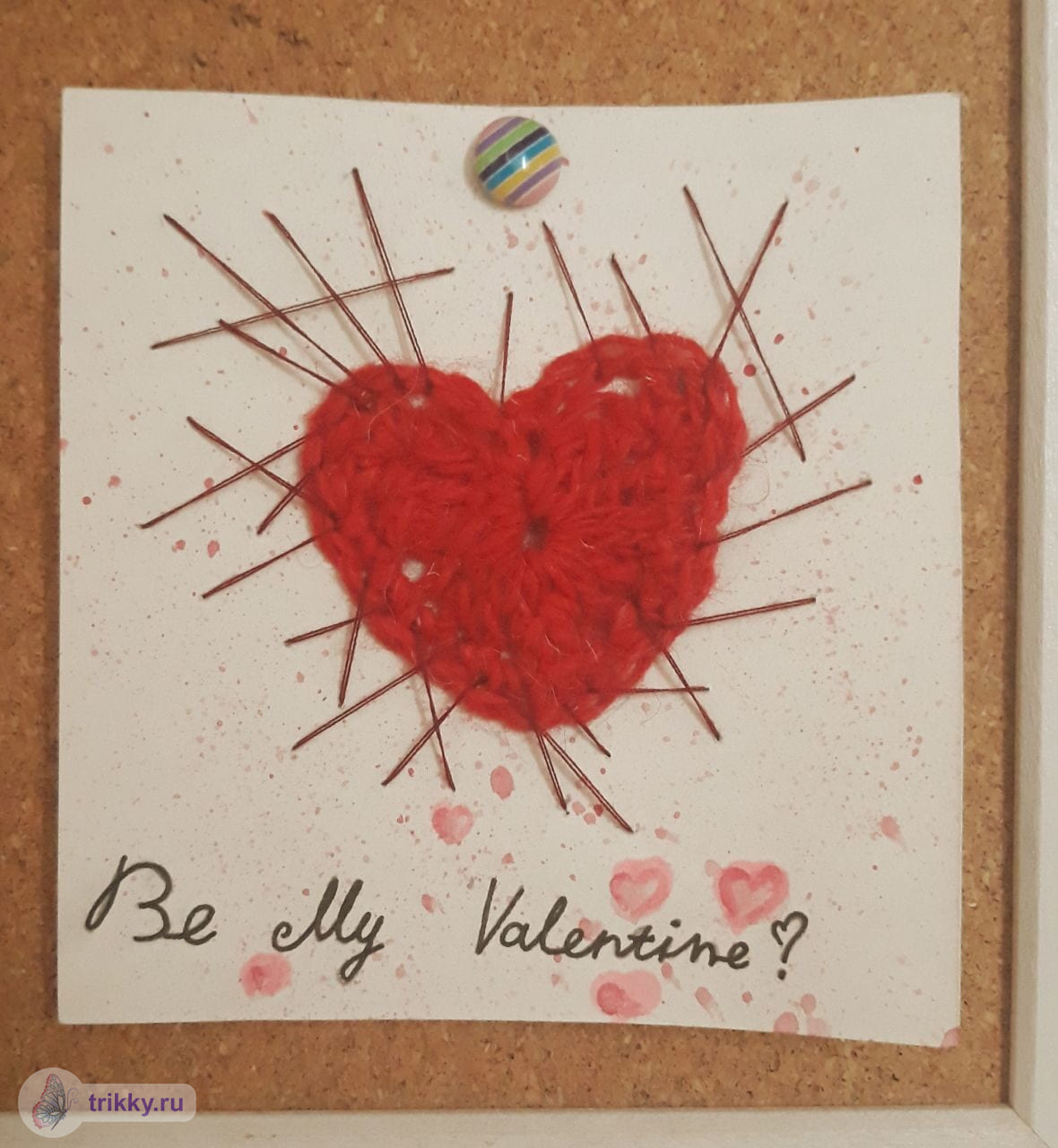 То есть, нужно сфотографировать валентинку с надписью "Трикки", когда она будет готова примерно наполовину.