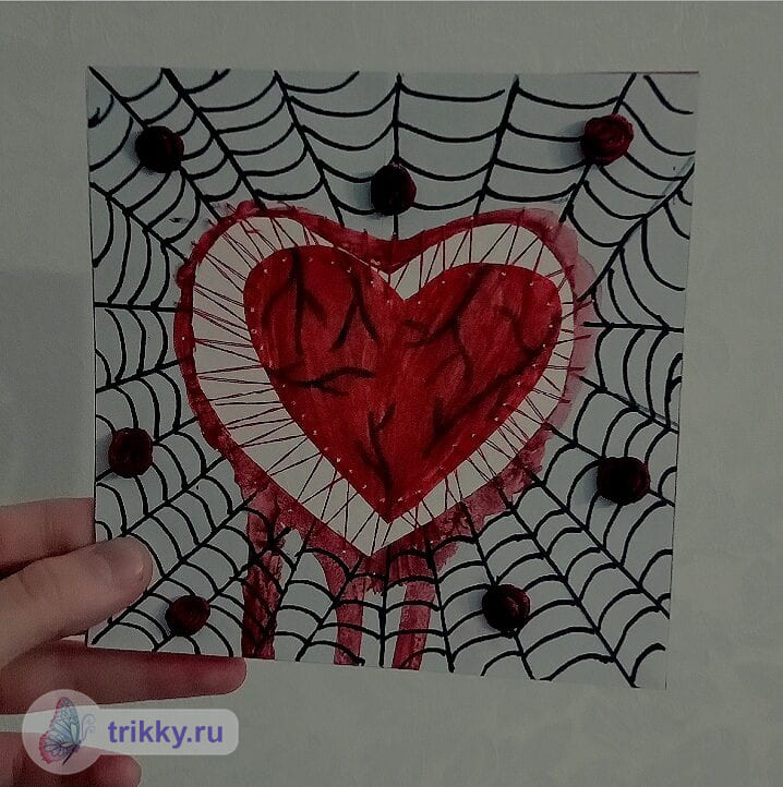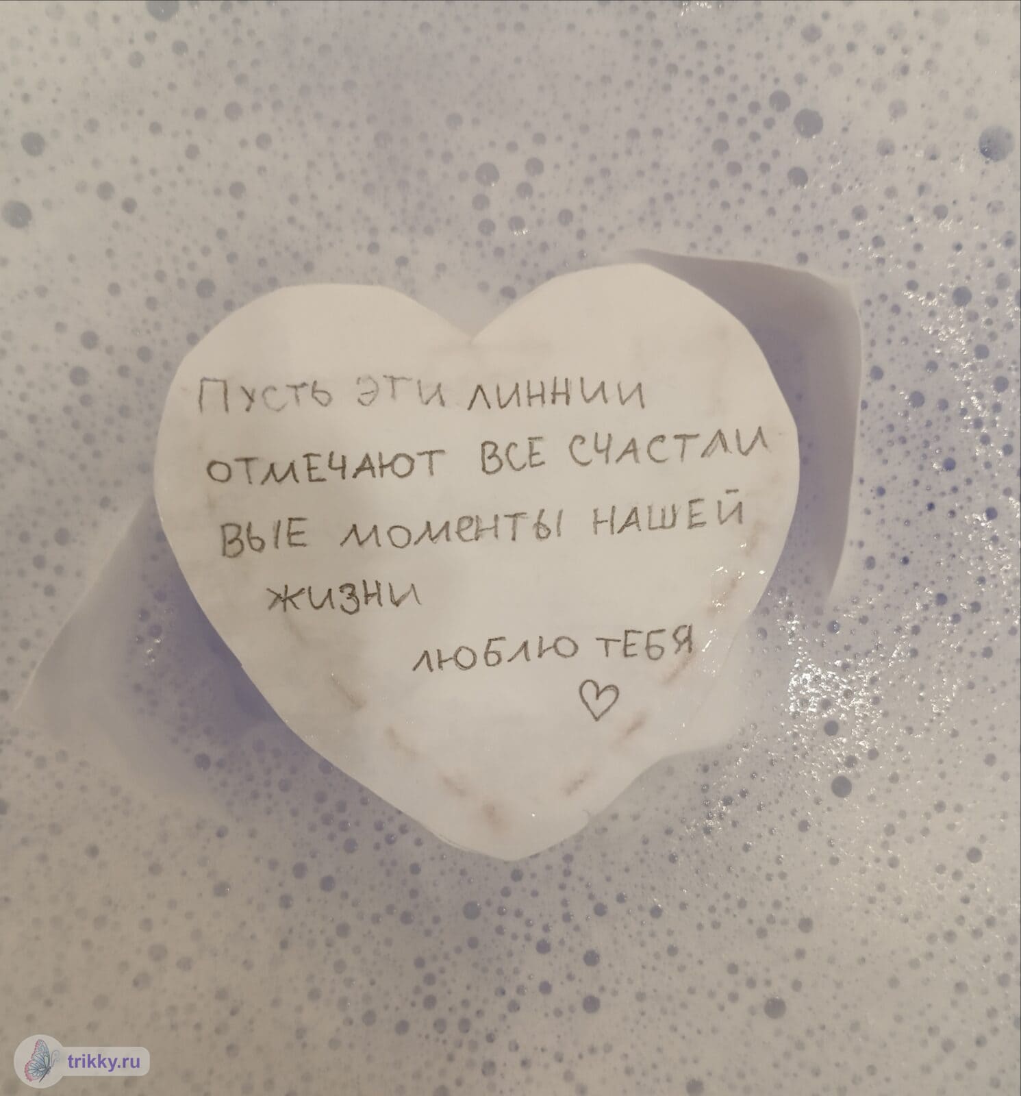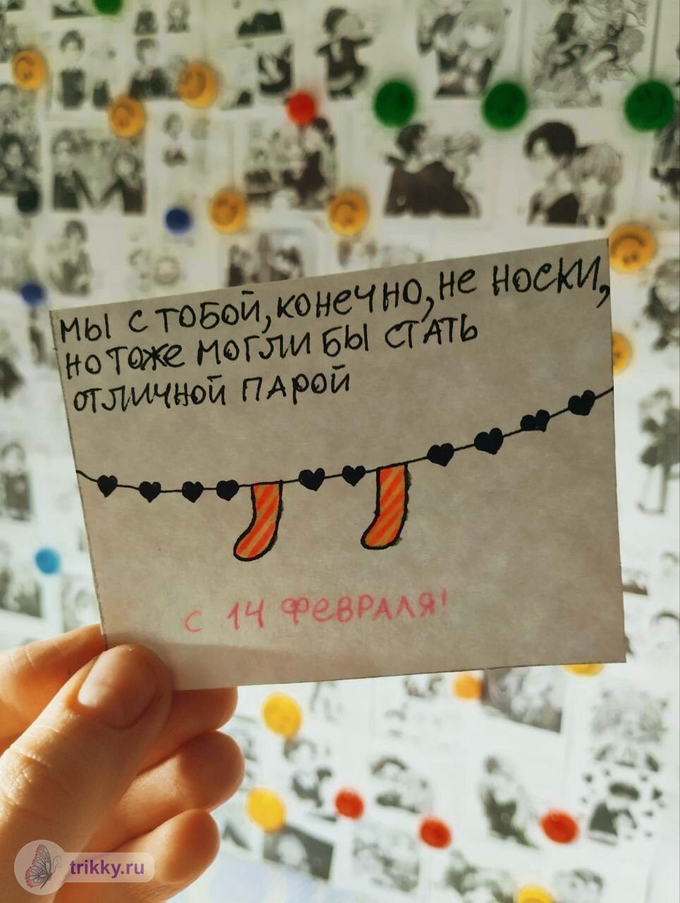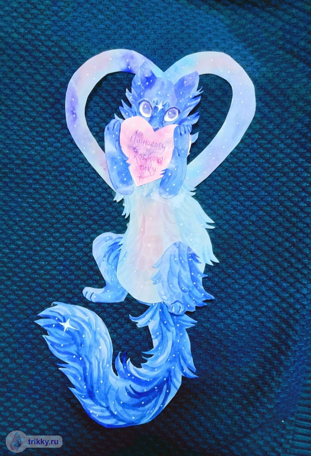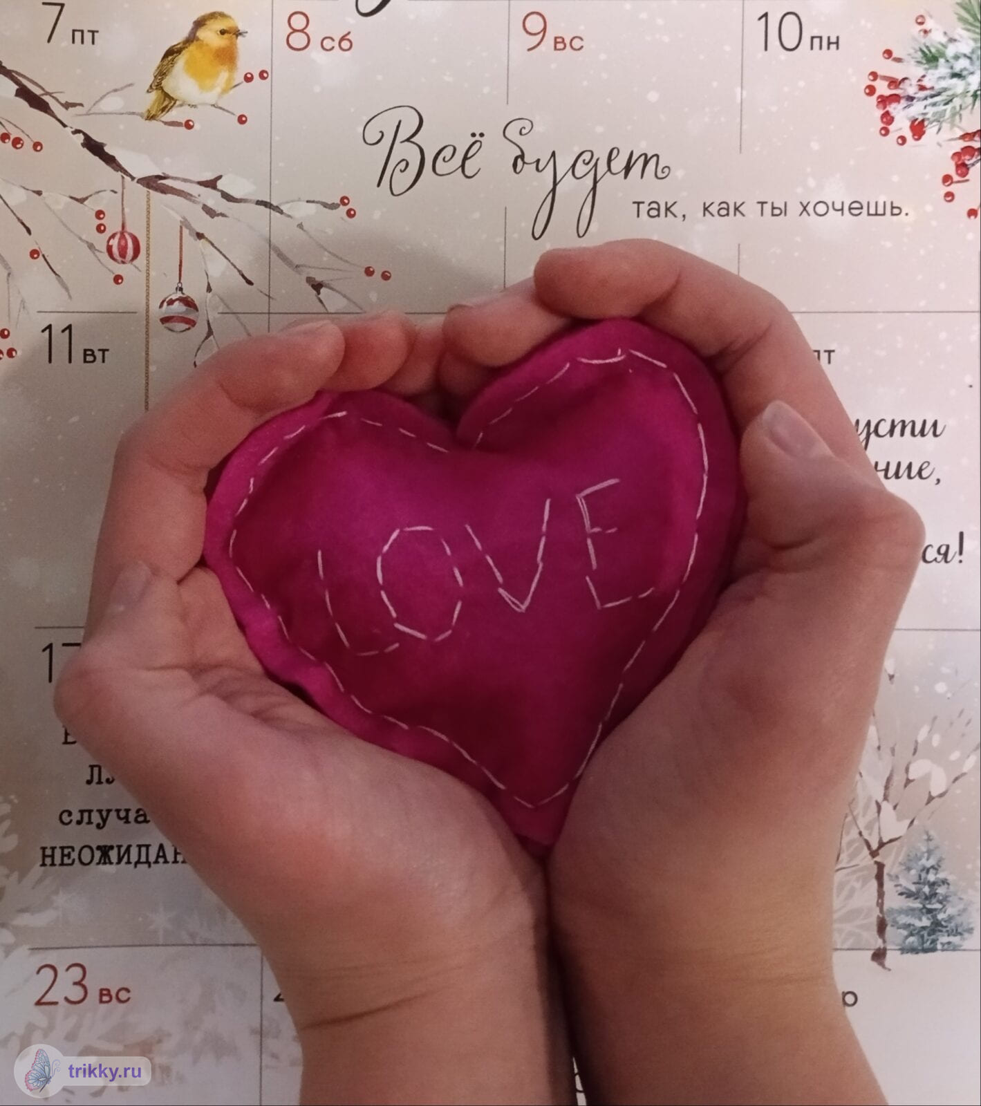 То есть, нужно сфотографировать валентинку с надписью "Трикки", когда она будет готова примерно наполовину.