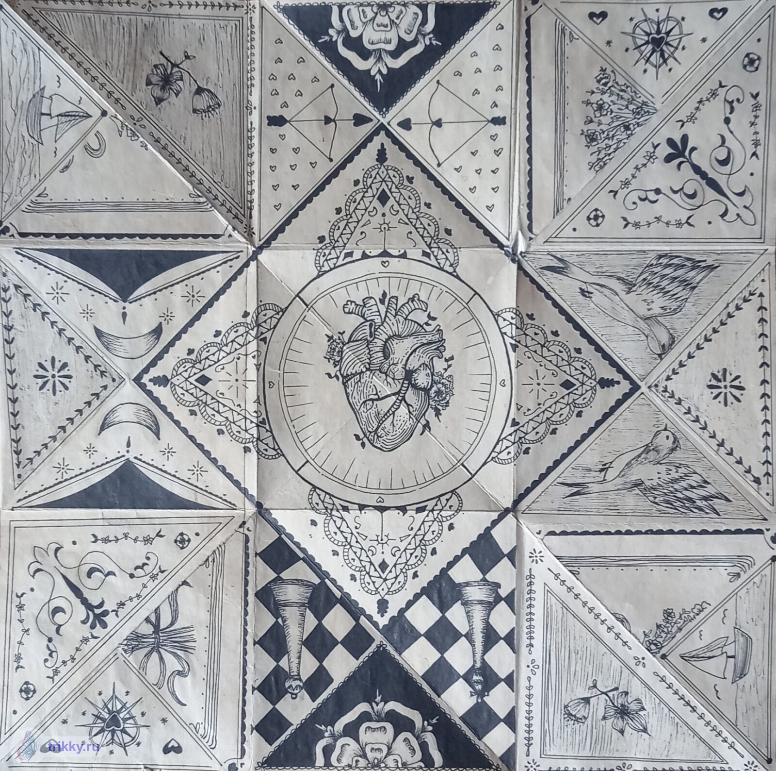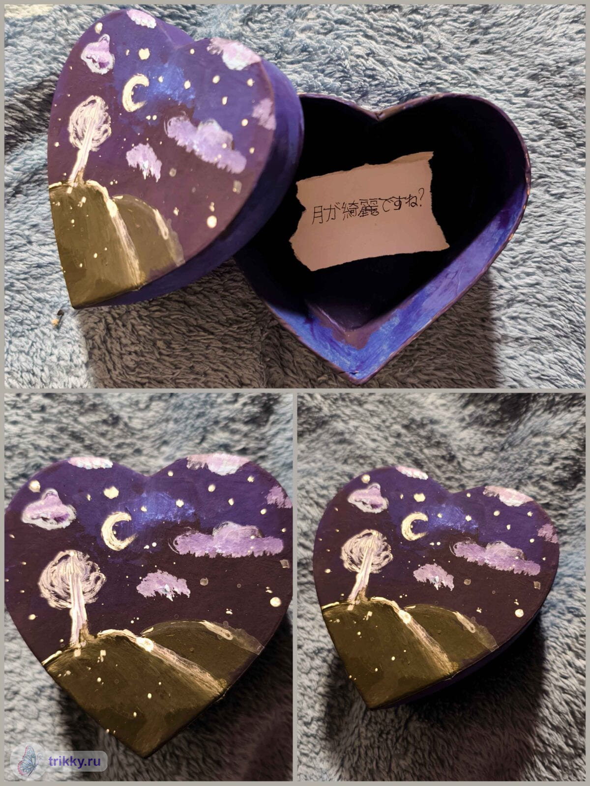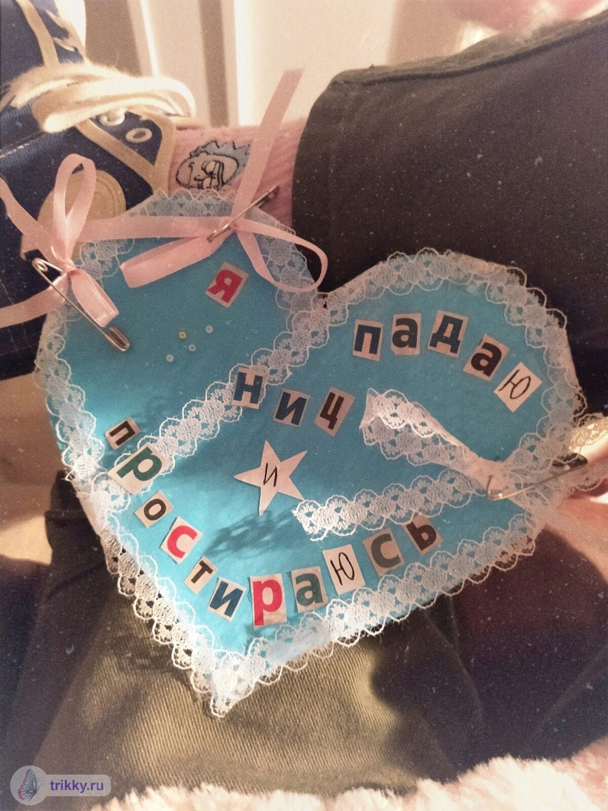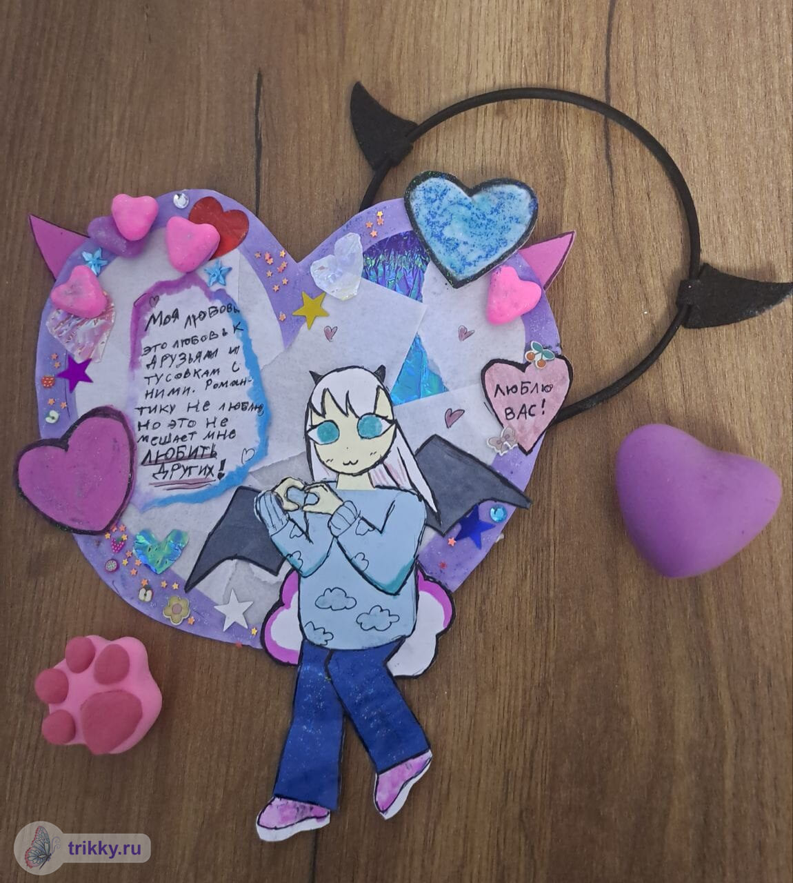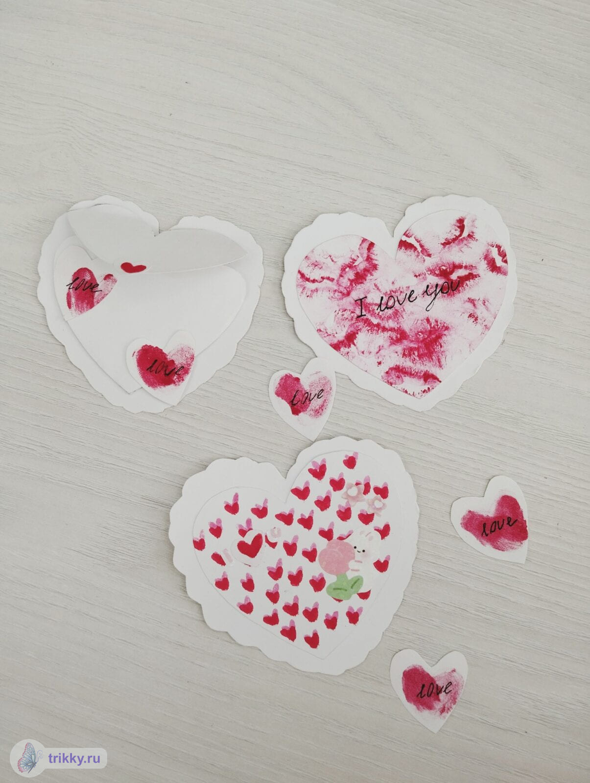 То есть, нужно сфотографировать валентинку с надписью "Трикки", когда она будет готова примерно наполовину.