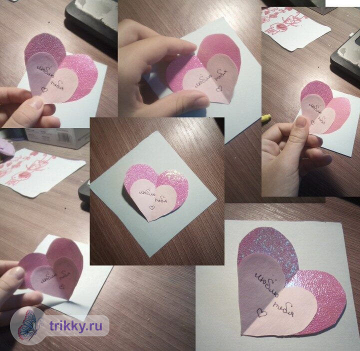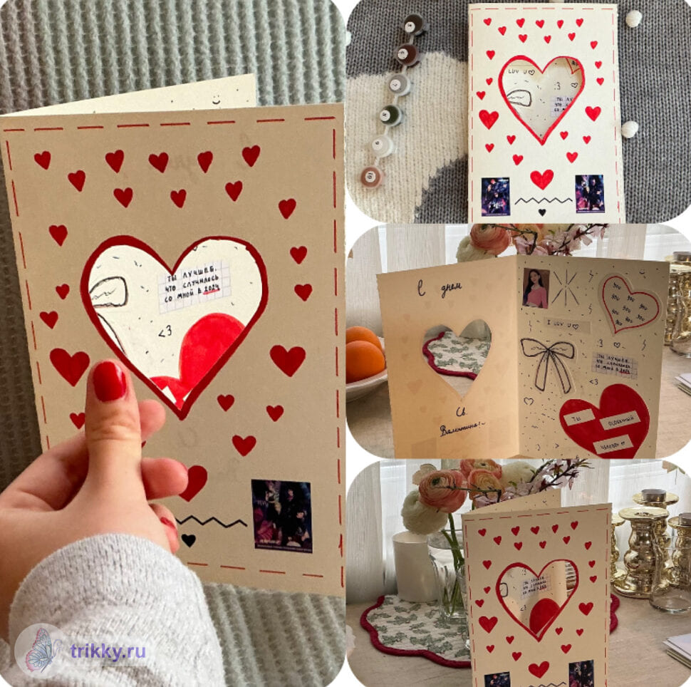 - Можно сделать коллаж из нескольких фотографий одной и той же валентинки с разных ракурсов.