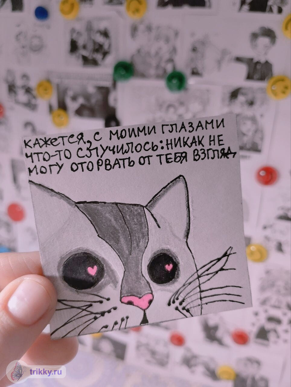в процессе работы И с надписью «Трикки» (на бумажке).