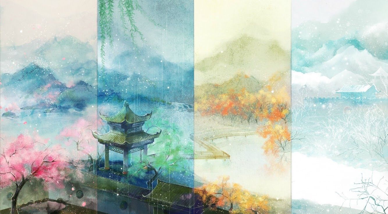 Как чудесно, что есть разные времена года, которые словно разные миры - так удивительно иногда одно и то же место преображается в годовом цикле! И каждое его состояние по-своему прекрасно, каждое имеет свою уникальную атмосферу. Давайте выберем какое-нибудь место и изобразим для него всё это богатство цветов и явлений на одном рисунке :)