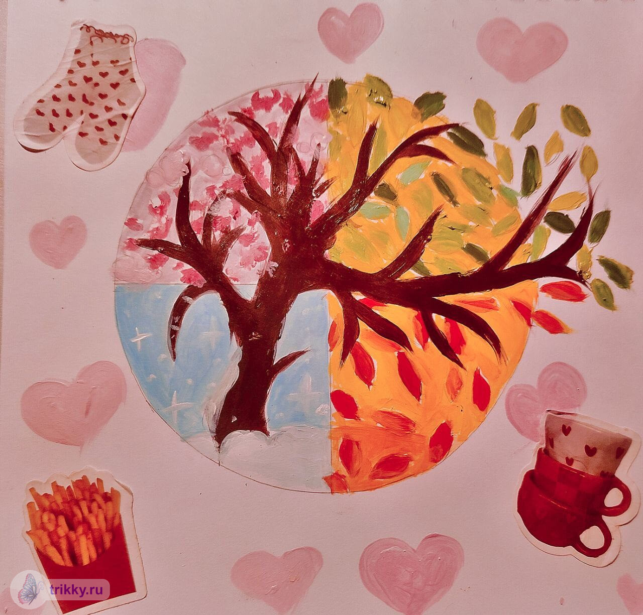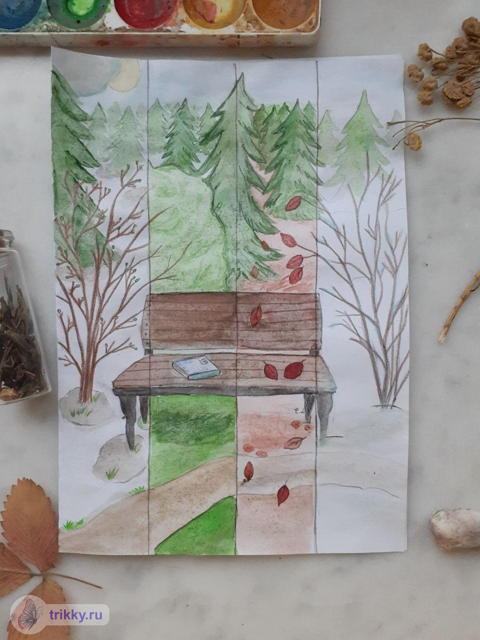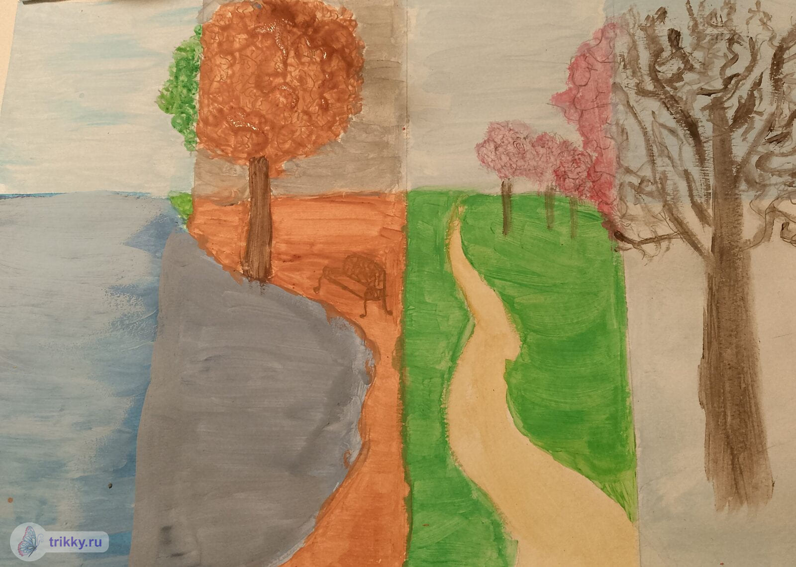 - Необязательно рисовать именно природу (можно город, например), но должны быть видны какие-нибудь признаки времен года.