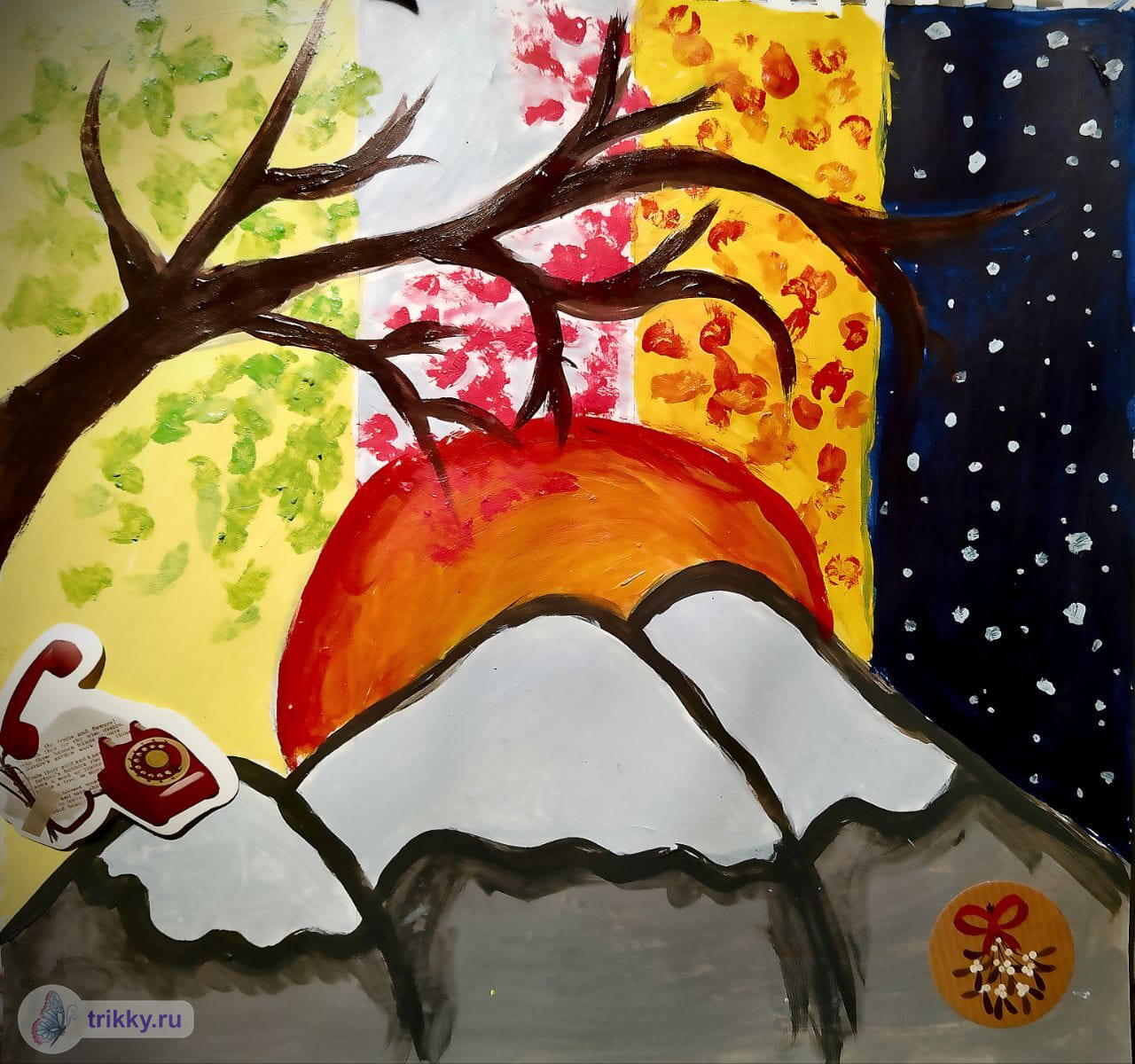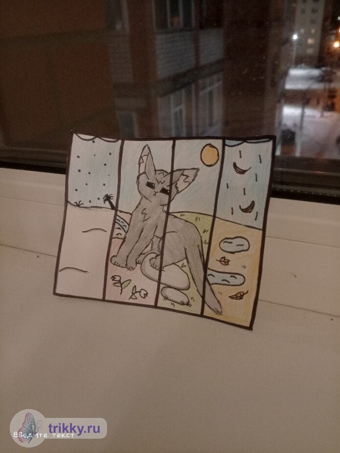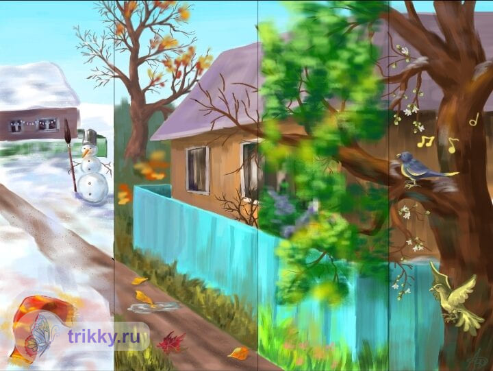 - Для участия в конкурсе нужно разделить единую сцену (например, пейзаж) на 4 части и каждую часть нарисовать в своем времени года. Пример на обложке конкурса, но части необязательно должны быть прямоугольные, можно произвольной формы.