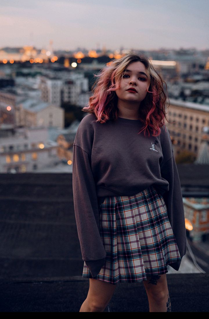 Ест овсянку с фруктами, ходит в Дикси, носит большую толстовку, её бросил парень, пишет песни, не пойдёт на выпускной, нет друзей.