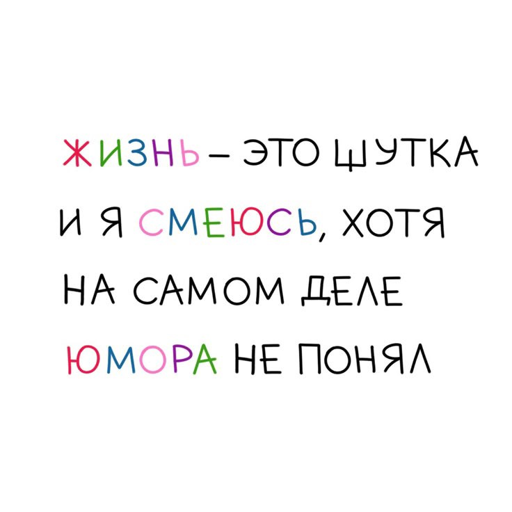 Ну тут легко. "Жизнь - это шутка и я смеюсь... Хотя на самом деле юмора не понял"